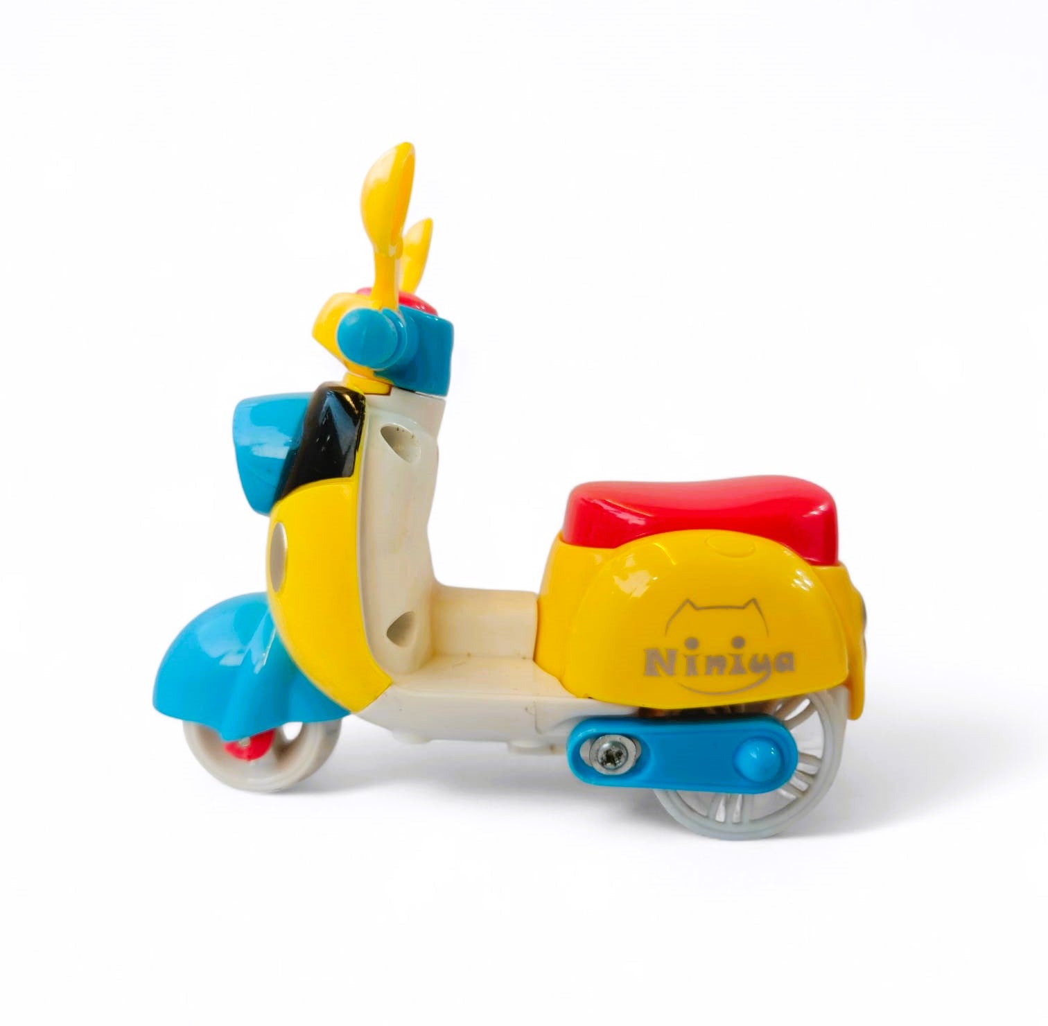 Vibrant Friction Scooters! Made with good quality plastic, these colorful scooters are perfect for kids! Each scooter comes in a fun color - blue, yellow, or red - with matching handlebars and cute details like a front "headlight." They're sturdy, playful, and sure to bring smiles!